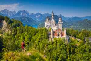 Im 19. Jahrhundert von König Ludwig II erbaut, thront das Schloss Neuschwanstein auf einer bewaldeten Anhöhe der Gemeinde Schwangau im bayerischen Allgäu. Der Prachtbau, der einst Wohnsitz des Königs war, zählt zu den beliebtesten Sehenswürdigkeiten für den Tourismus in Deutschland. Jährlich zieht das mittelalterliche Schloss als bedeutendstes Bauwerk des Historismus mehr als 1 Million Besucher an.