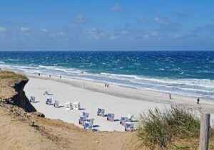 Das gemütliche und traditionsreiche Dorf Kampen, gelegen zwischen dem Wattenmeer und einem Naturschutzgebiet, ist bekannt für seine Reetdach-Häuser, die Steilküste „Rotes Kliff“ und die kultigen Strandlokale, wie etwa die Buhne 16, die sich am letzten der vier Strandabschnitte befindet. In Kampen auf Sylt werden den Gästen ein Familienstrand mit Rettungsschwimmern, zwei Hundestrände und ein Aktivitätenstrand geboten.